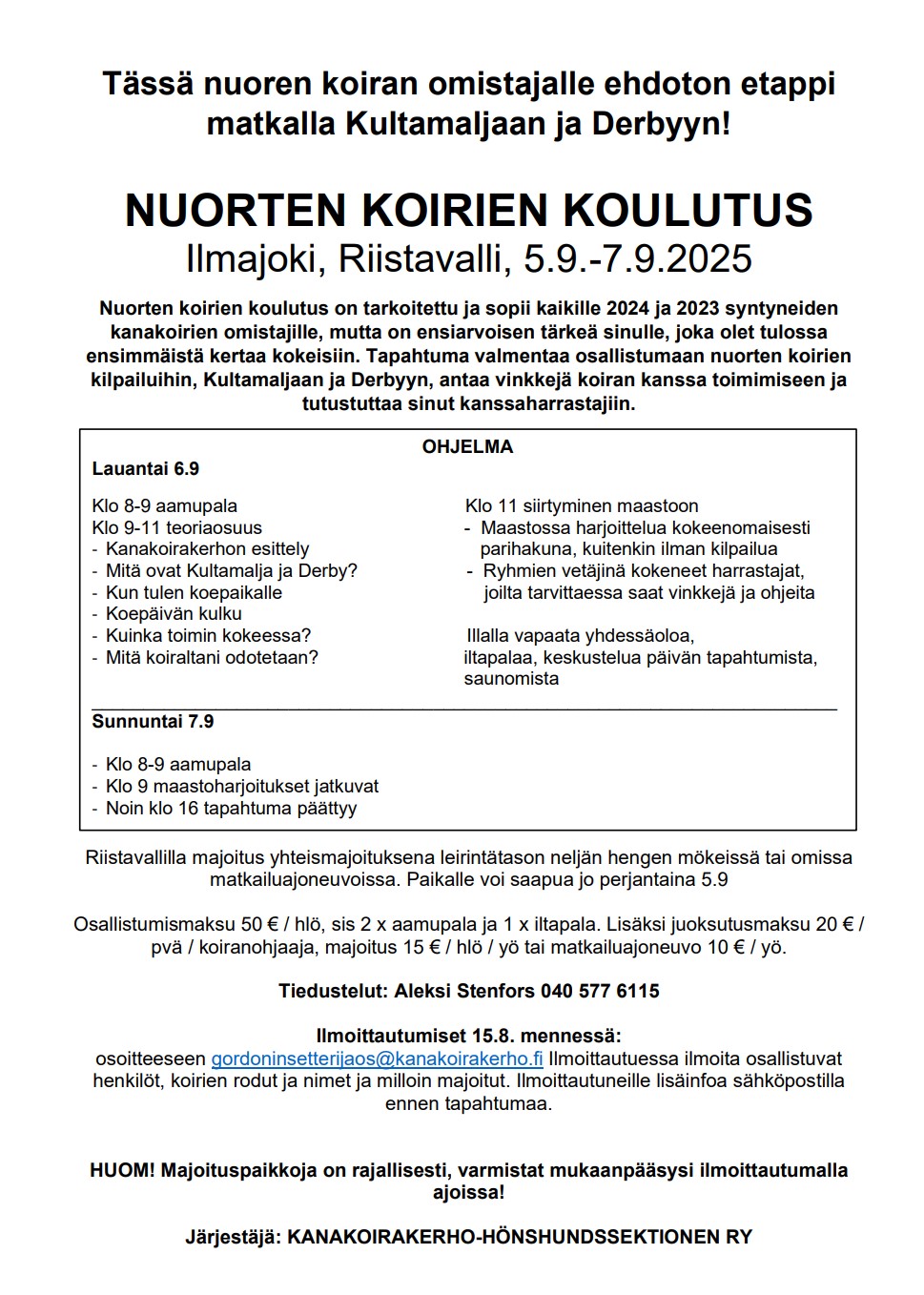 Nuorten koirien koulutus 5-7.9.2025