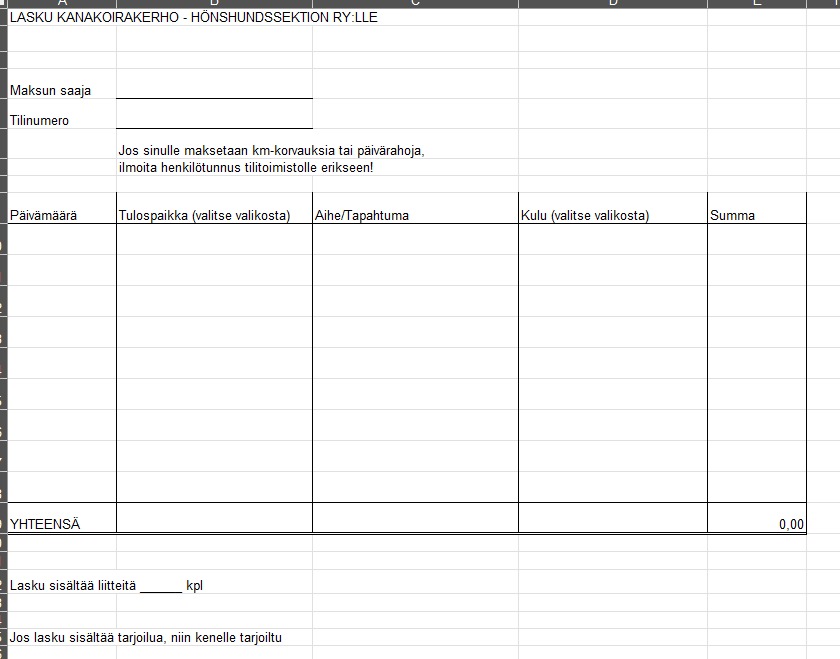 Kanakoirakerho-Hönshundssektionenin matkalaskujen käsittelyyn sekä itse laskuun tehdään pieniä muutoksia. Tavoitteena muutoksilla on saada matkalaskuprosessi helpommaksi ja tiliöinti sujuvammaksi.